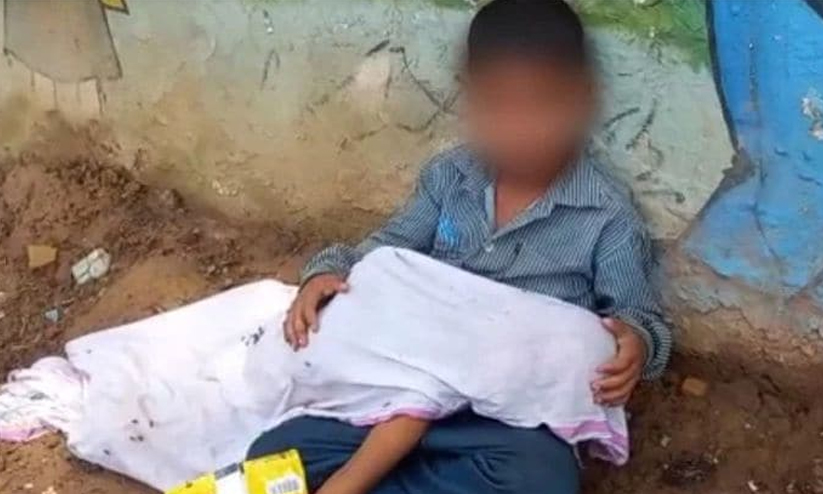 കുഞ്ഞനുജന്റെ മൃതദേഹവും കെട്ടിപ്പിടിച്ച് നിറകണ്ണുകളോടെ റോഡരികിൽ അവൻ ഇരുന്നു; കരളലിയിക്കുന്ന കാഴ്ചയായി എട്ടുവയസുകാരൻ