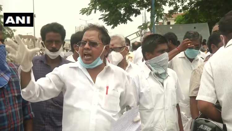 കോയേമ്പട് മാർക്കറ്റ് തുറക്കണമെന്നാവശ്യപ്പെട്ട് വ്യാപാരികളുടെ പ്രതിഷേധം