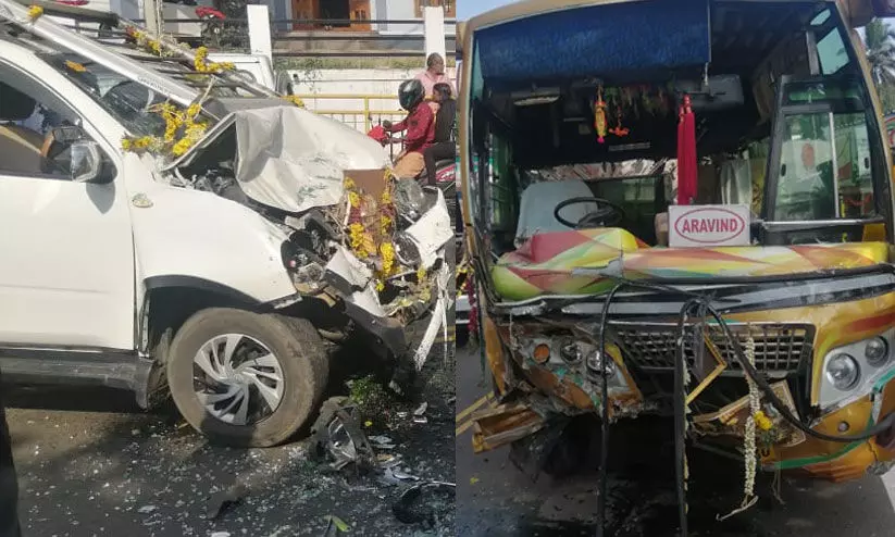 ശബരിമലയിലേക്ക് പോയ ബസും ജീപ്പും കൂട്ടിയിടിച്ച് 8 തീർത്ഥാടകർക്ക് പരിക്ക്