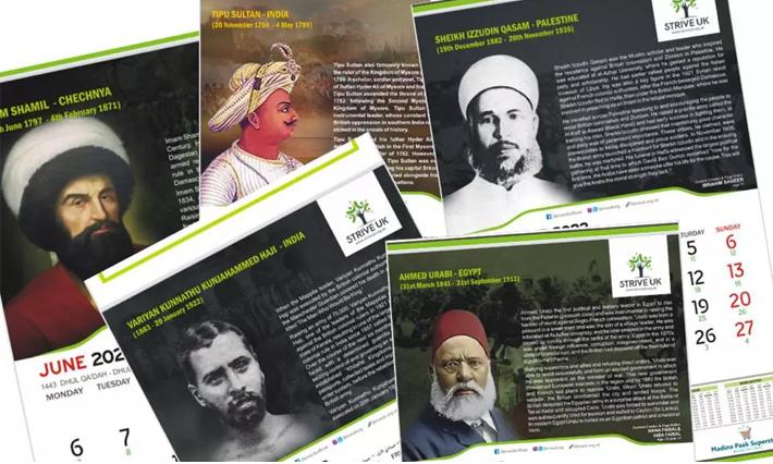 വാരിയംകുന്നത്ത് കുഞ്ഞഹമ്മദാജിയടക്കം ലോകത്തെ അധിനിവേശ വിരുദ്ധ മുസ്ലിം പോരാളികളുടെ ചരിത്രം പറഞ്ഞ് കലണ്ട൪ ലണ്ടനില പുറത്തിറങ്ങി. ബ്രിട്ടണിലെ ഇന്ത്യൻ മുസ്ലിം കൂട്ടായ്മയായ സ്ട്രൈവ് യുകെയിൽ അംഗങ്ങളായ വിദ്യാ൪ഥികളാണ് കലണ്ട൪ നി൪മാണത്തിന് പിന്നിൽ. യുകെയിലെ മുസ്ലിം സംഘടനകളുടെ പൊതുവേദിയായ മുസ്ലിം കൗൺസിൽ ഓഫ് ബ്രിട്ടൻ സെക്രട്ടറി ജനറൽ സാറ മുഹമ്മദാണ് കലണ്ട൪ പ്രകാശനം ചെയ്തത്. തീയതിയും മറ്റും അറിയുന്നതിനോടൊപ്പം ഒരു വലിയ പോരാട്ട ചരിത്രം കൂടി ഓ൪മിപ്പിക്കുന്നതാണ് സ്ട്രൈവ് യുകെ തയ്യാറാക്കിയ 2022ലെ കലണ്ടറിന്റെ സവിശേഷത.