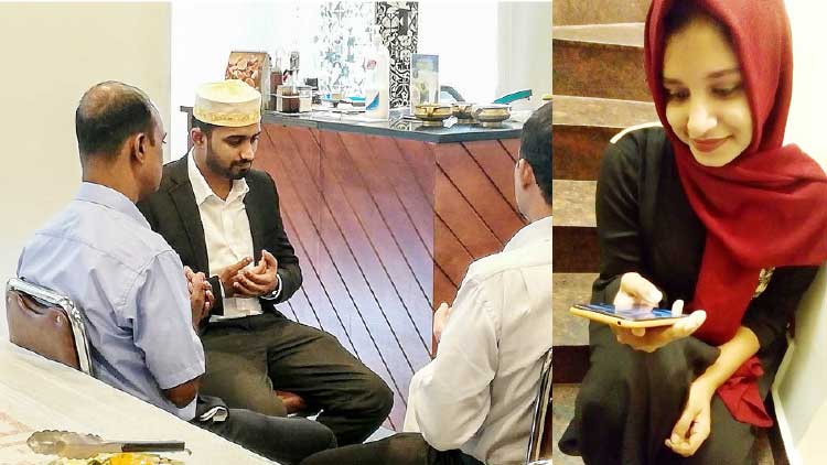 text_fieldsസൗദിയിൽ നിക്കാഹിനിടെ വരൻ ആസിഫ് നാസർ, നിക്കാഹ് കാണുന്ന വധു ആമിന