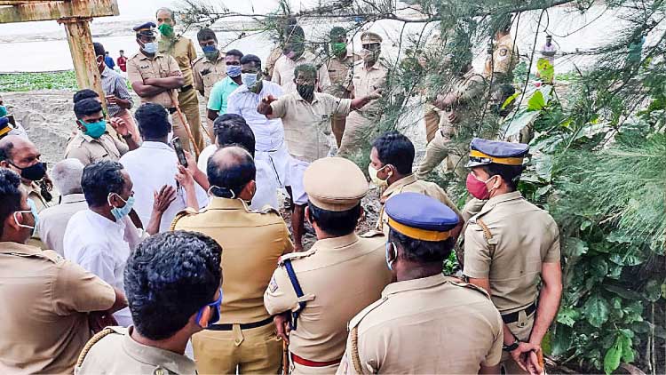 തോട്ടപ്പള്ളി കരിമണൽ ഖനനം: സത്യഗ്രഹം നിർത്തണമെന്ന് പൊലീസ്; വാക്കേറ്റം