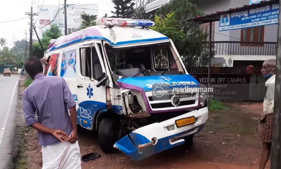 text_fieldsതിരുവല്ല: പത്തനംതിട്ടയിൽ നിന്നും ഗർഭിണിയുമായി തിരുവല്ലയിലേക്കെത്തിയ ആംബുലൻസ് മഞ്ഞാടിയിൽ ഇരുമ്പ് പോസ്റ്റിലിടിച്ച് മറിഞ്ഞുണ്ടായ അപകടത്തിൽ നാലു പേർക്ക് ഗുരുതരമായി പരിക്കേറ്റു. എട്ടു മാസം ഗർഭിണിയായിരുന്ന സീതത്തോട് ചരിവുകാലായിൽ വീട്ടിൽ റസീന സഈദു (27) മായി തിരുവല്ല പുഷ്പഗിരി ആശുപത്രിയിലേക്ക് എത്തിയ ആംബുലൻസാണ് അപകടത്തിൽപെട്ടത്. റസീനയുടെ പിതൃ സഹോദരി പത്തനംതിട്ട പള്ളിപ്പടിഞ്ഞാറേതിൽ നബീസ മുസ്തഫ (52), നബീസയുടെ മകൾ സാലിക (23), റസീനയുടെ ഭർതൃ മാതാവ് പാറയ്ക്കൽ സാഹിദ (52) എന്നിവർക്കാണ് പരിക്കേറ്റത്.