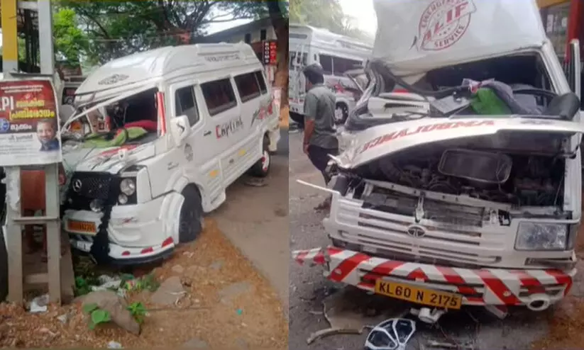 സുൽത്താൻ ബത്തേരിയിൽ നിന്ന് കോഴിക്കോട്ടേക്ക് വരികയായിരുന്ന ആംബുലൻസും കൊല്ലത്തേക്ക് പോവുകയായിരുന്ന ട്രാവലറുമാണ് കൂട്ടിയിടിച്ചത്.
