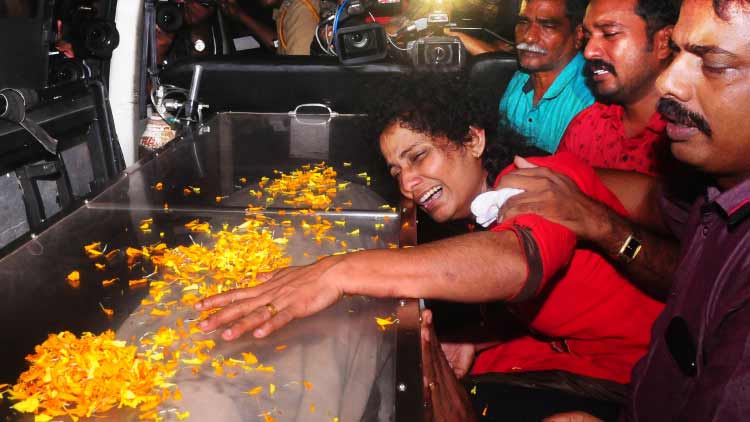 തിരക്കും ബഹളവുംമൂലം പല സഹപ്രവർത്തകർക്കും മൃതദേഹം കാണാനായില്ല. പത്തുമിനിറ്റോളം ആംബുലൻസിൽതന്നെ വെച്ചശേഷം സ്വദേശമായ എടക്കാട്ടുവയലിലേക്ക് കൊണ്ടുപോയി. ഹൈബി ഈഡൻ എം.പി, ടി.ജെ. വിനോദ് എം.എൽ.എ, ജില്ല കലക്ടർ എസ്. സുഹാസ് തുടങ്ങിയവർ അന്ത്യോപചാരമർപ്പിക്കാനെത്തി.