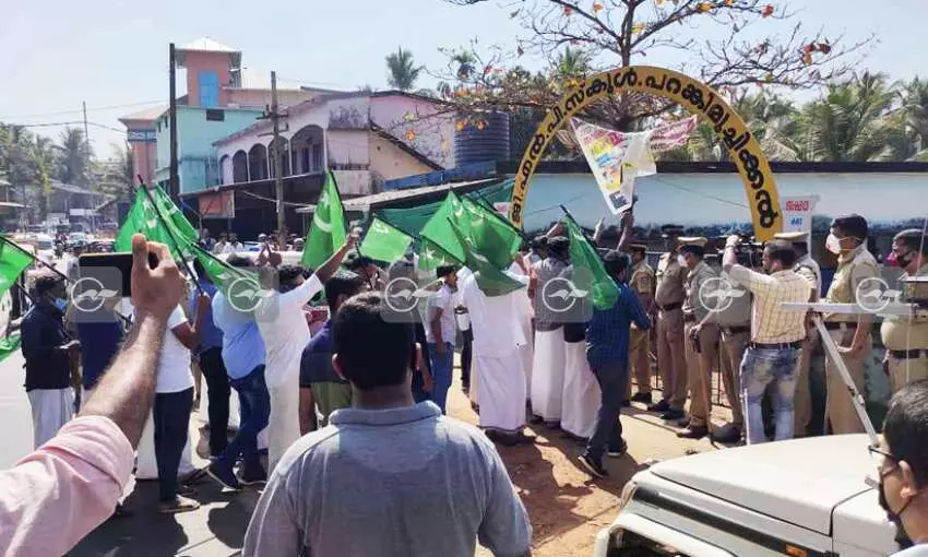 സ്കൂളിലേക്ക് യൂത്ത് ലീഗ് നടത്തിയ മാർച്ച് ജില്ല സെക്രട്ടറി ഷരീഫ് വടക്കയിൽ ഉദ്ഘാടനം ചെയ്തു. പി.കെ. സലാം അധ്യക്ഷത വഹിച്ചു. വി.എ. റഹ്മാൻ, ഒളകര കുഞ്ഞിമാനു, വി. മാനു, വി. ഇബ്രാഹിം കുട്ടി, എൻ.കെ. റിയാസുദ്ദീൻ, ടി.ടി. റാഫി, എം.പി. നിസാർ, കെ.പി. റഹ്മാൻ, പി. ബാവ, സിദ്ദീഖ്, എ.കെ. ഷബീർ, സലീം ചാപ്പനങ്ങാടി എന്നിവർ നേതൃത്വം നൽകി. ഗ്രാമപഞ്ചായത്തിലും സ്കൂൾ അധികൃതർക്കും പരാതിയും നൽകി. എസ്.ഡി.പി.ഐ മാർച്ച് മുസ്തഫ മാസ്റ്റർ ഉദ്ഘാടനം ചെയ്തു. മുജീബ് മാസ്റ്റർ, പി.കെ. ഹംസ, റൈഹാനത്ത്, മുസ്തഫ വില്ലൻ എന്നിവർ സംസാരിച്ചു. ഹഫ്സ മുസ്തഫ മാസ്റ്റർ, ഷാഹിന ലത്തീഫ്, സൈനബ അലവിക്കുട്ടി, സുഹ്റ ഷരീഫ് എന്നിവർ പങ്കെടുത്തു.