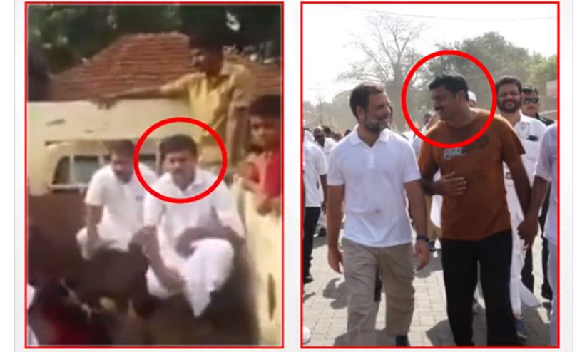 രാഹുൽ ഗാന്ധിയുടെ കൂടെ റിജിൽ മാക്കുറ്റി നടക്കുന്ന ഫോട്ടോ ഉപയോഗിച്ച് ബി.ജെ.പിയുടെ വിദ്വേഷ പ്രചാരണം