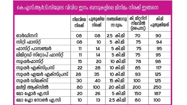 കോവിഡ് കാല ബസ് ചാർജ് വർധന നാളെ മുതൽ; നിരക്കുകൾ ഇങ്ങനെ