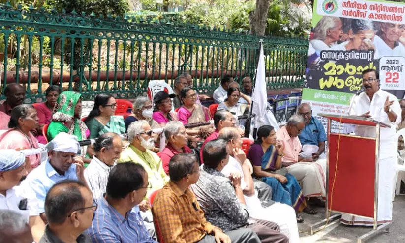 text_fieldsതിരുവനന്തപുരം: വയോജനങ്ങളുടെ സാമൂഹ്യ ക്ഷേമ പെൻഷൻ കുടികശിയില്ലാതെ നൽകുന്നത് ഉൾപ്പെടെയുള്ള പ്രശ്നങ്ങൾ പരിഹരിക്കുന്നതിന് മുഖ്യമന്ത്രിയുടെ അടിയന്തിര ഇടപെടൽ ഉണ്ടാവണമെന്ന് മുൻ മന്ത്രി സി.ദിവാകരൻ. സീനിയർ സിറ്റിസൺസ് സർവീസ് കൗൺസിൽ വിവിധ ആവശ്യങ്ങൾ ഉന്നയിച്ചുകൊണ്ട് ചൊവ്വാഴ്ച നടത്തിയ സെക്രട്ടറിയേറ്റ് ധർണ ഉദ്ഘാടനം ചെയ്യുകയായിരുന്നു അദ്ദേഹം.