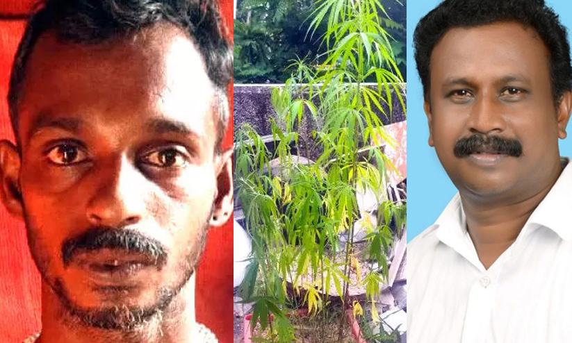 text_fieldsപിടിയിലായ രഞ്ജിത്ത്, പിടിച്ചെടുത്ത കഞ്ചാവ് ചെടികൾ, സന്തോഷ്