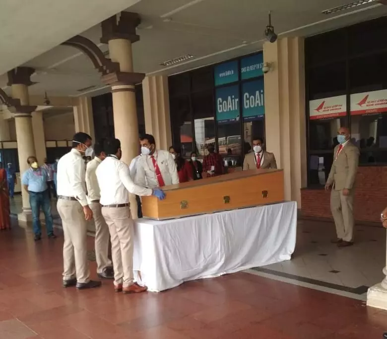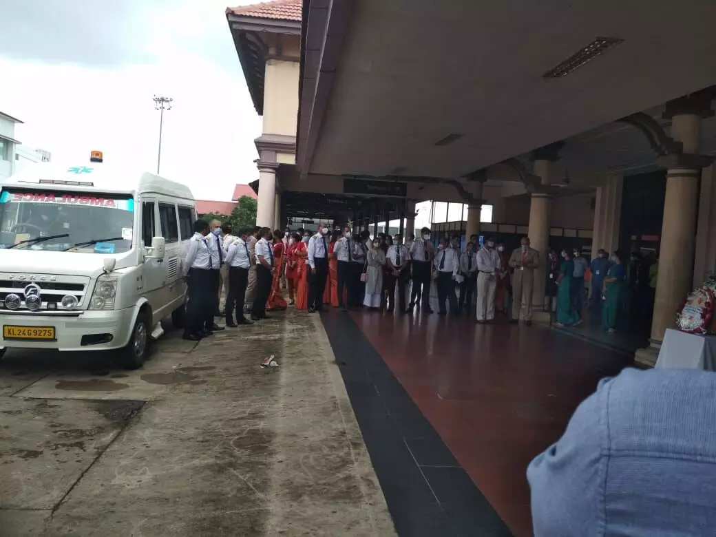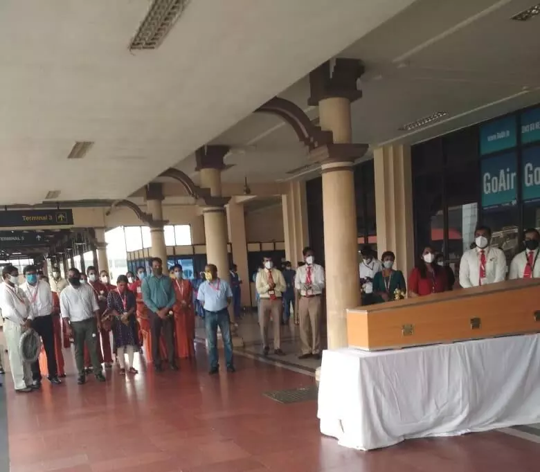 കൊച്ചി: കരിപ്പൂർ വിമാന അപകടത്തിൽ മരിച്ച ക്യാപ്റ്റൻ ദീപക് ബസന്ത് സാഠേയുടെ മൃതദേഹത്തിൽ ആദരാഞ്ജലികൾ അർപ്പിച്ച് സഹപ്രവർത്തകർ. നാഗ്പൂരിലേക്ക് കൊണ്ടുപോകും വഴി മൃതദേഹം