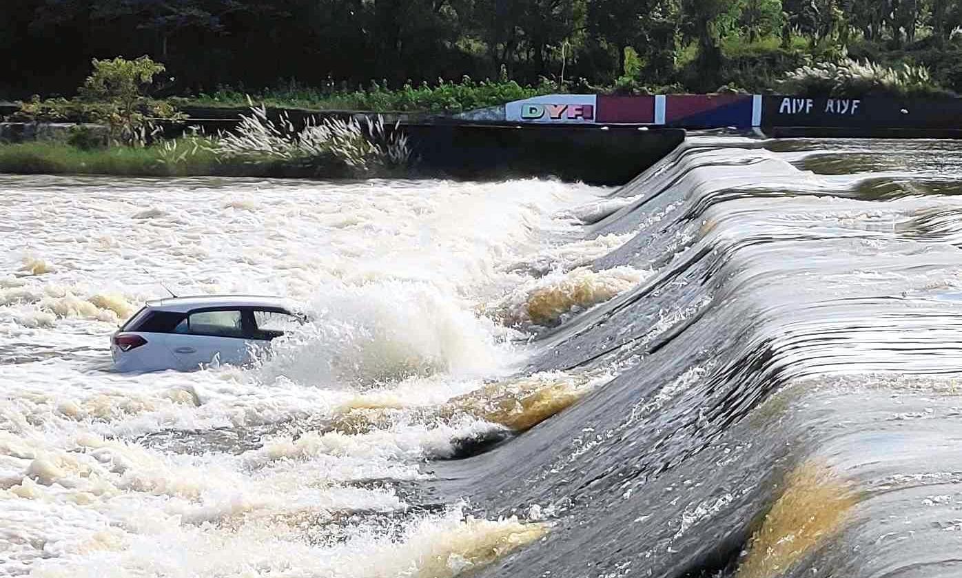 തടയണയിലൂടെ സഞ്ചരിച്ച കാർ പുഴയിൽ വീണു; യാത്രക്കാരനെ രക്ഷിച്ചു
