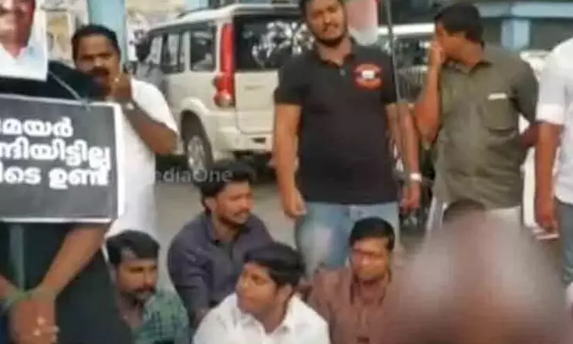 കൊച്ചി നഗരസഭയുടെ പരിധിയിലുള്ള ഓടയിൽ കുട്ടി വീണ സംഭവത്തിൽ കോർപറേഷൻ മാർച്ചിനു ശേഷമായിരുന്നു യൂത്ത്കോൺഗ്രസ് പ്രതിഷേധം. കുട്ടിയെ ഉടുപ്പിടുവിക്കാതെ നിലത്ത് കിടത്തുകയായിരുന്നു. മേയർ സ്ഥലത്തുണ്ട് എന്ന ബാനറും പ്രതിഷേധക്കാർ ഉയർത്തി.