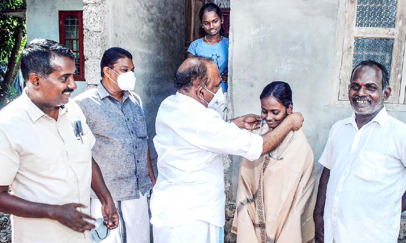 text_fieldsഓമനക്കുട്ടെൻറ വീട്ടിലെത്തിയ മന്ത്രി പി. തിലോത്തമൻ സുകൃതിക്ക് സ്റ്റെതസ്കോപ് നൽകി അഭിനന്ദിക്കുന്നു