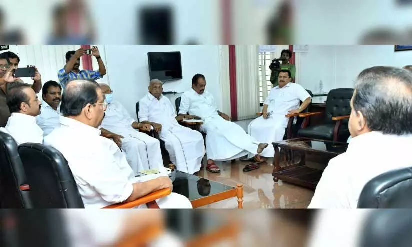 text_fieldsഇന്ദിര ഭവനിൽ ചേർന്ന കെ.പി.സി.സി രാഷ്ട്രീയകാര്യ സമിതി യോഗത്തിൽ പങ്കെടുക്കുന്ന രമേശ് ചെന്നിത്തല, പ്രസിഡന്റ് കെ. സുധാകരൻ, പ്രതിപക്ഷനേതാവ് വി.ഡി. സതീശൻ, കൊടിക്കുന്നിൽ സുരേഷ് എം.പി, പി.ജെ. കുര്യൻ, കെ.സി. ജോസഫ്, ബെന്നി ബഹനാൻ എം.പി, കെ. മുരളീധരൻ എം.പി തുടങ്ങിയവർ
