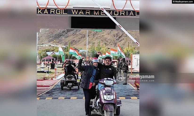 സൈഡ് വീലുകൾ ഘടിപ്പിച്ച 10 സ്കൂട്ടറുകളിൽ ഡൽഹിയിൽനിന്ന് കാർഗിലിലേക്ക് യാത്ര ചെയ്ത് യുദ്ധ സ്മാരകത്തിൽ ഇന്ത്യൻ പതാക വീശിയ 14 അംഗ സംഘം ഡൽഹിയിൽ തിരിച്ചെത്തുമ്പോൾ 12 ദിവസംകൊണ്ട് താണ്ടിയ ദൂരം 2500 കിലോമീറ്റർ ആണ്.
