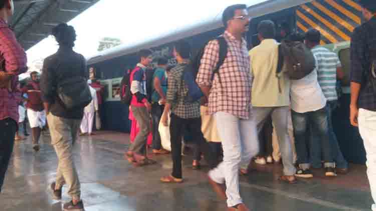 text_fieldsകോഴിക്കോട്: മരണവീട്ടിൽ അമ്പതിൽ കൂടുതൽ പേർ ചേർന്നാൽ പൊലീസിനെ വിളിക്കുമെന്ന് ഉത്തരവിട്ട നാട്ടിലെ ട്രെയിൻ യാത്ര സർക്കാർ കാണുന്നില്ലേയെന്ന് യാത്രക്കാർ. ‘ജനറൽ കമ്പാർട്ടുമെെൻറന്താ കൊറോണ കേറാ മലയാണോ?’ എന്നാണ് ജനറൽകമ്പാർട്ടുമെൻറിൽ കയറാൻ തിരക്കുകൂട്ടുന്ന യാത്രക്കാരുടെ ചിത്രം പങ്കുവെച്ച് രാജ് ഗോവിന്ദ് എന്ന യാത്രക്കാരൻ ചോദിക്കുന്നത്.