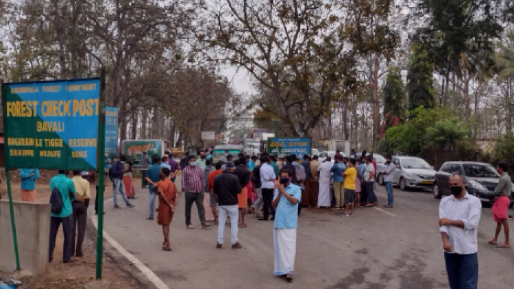 text_fieldsകോവിഡ് വ്യാപനത്തിന്റെ പേരിൽ കേരളത്തില്നിന്നുള്ള വാഹനങ്ങൾ കർണാടക അധികൃതർ തടഞ്ഞിട്ടപ്പോൾ ബാവലി അതിര്ത്തിയില് കുടുങ്ങിയ മലയാളികൾ