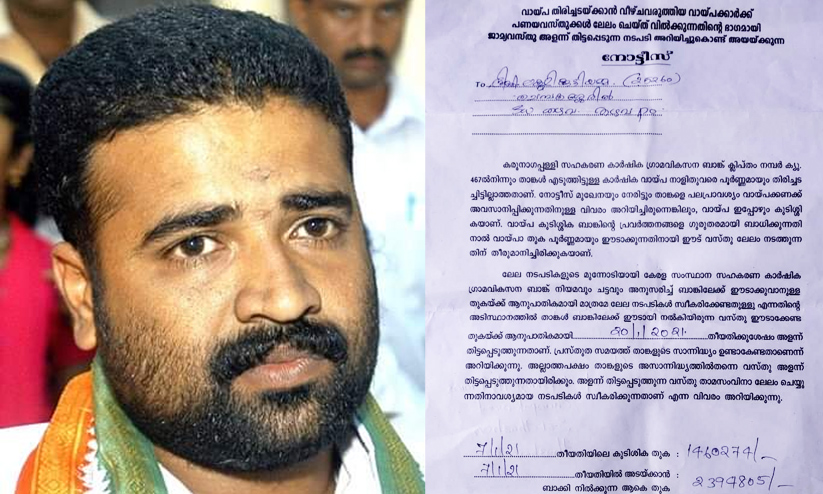 text_fieldsസി.ആർ. മഹേഷ്, ബാങ്കിൽ നിന്നും അയച്ച ജപ്തി നോട്ടീസ്