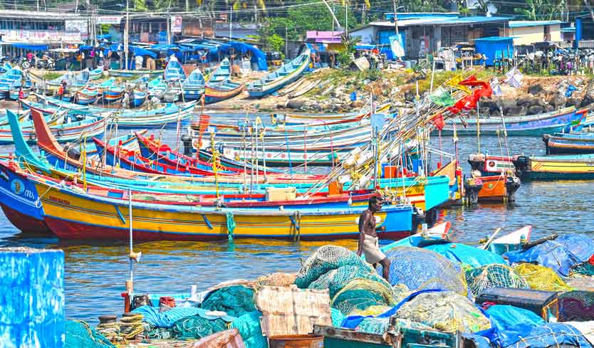 കരക്കടുപ്പിച്ച മീൻപിടിത്ത ബോട്ടുകൾ