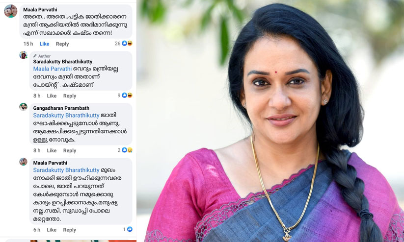 പട്ടിക ജാതിക്കാരനെ മന്ത്രി ആക്കിയതിൽ അഭിമാനിക്കുന്നു എന്ന് സഖാക്കൾ! കഷ്ടം തന്നെ! -മാലാ പാർവതി