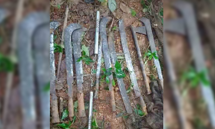 പൊലീസിന് ലഭിച്ച രഹസ്യവിവരത്തിന്റെ അടിസ്ഥാനത്തിൽ ചൊവ്വാഴ്ച വൈകിട്ട് നടത്തിയ പരിശോധനയിലാണ് സ്വകാര്യ വ്യക്തിയുടെ പറമ്പിനടുത്തുള്ള ഓവുചാലിൽ ഒളിപ്പിച്ചുവച്ച നിലയിൽ മാരകായുധങ്ങൾ കണ്ടെത്തിയത്.