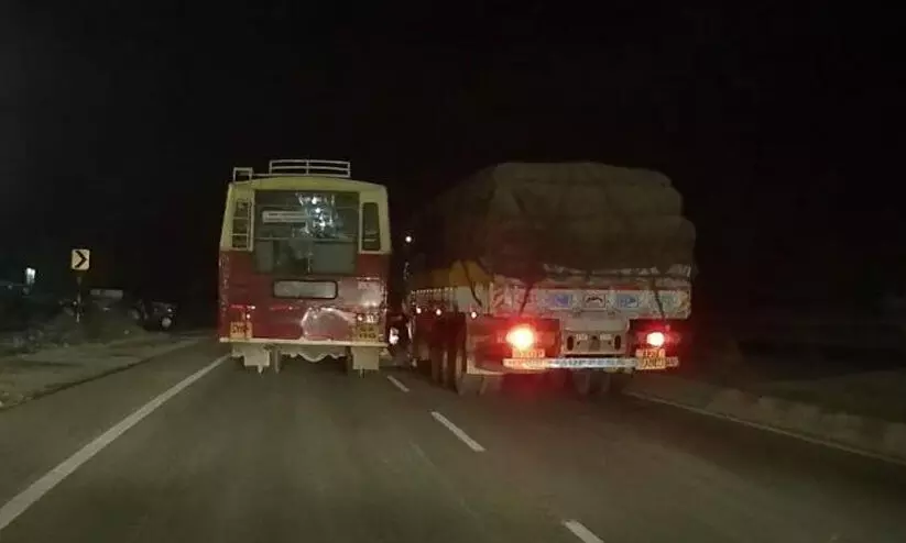 ലോറിയാണ് അപകടമുണ്ടാക്കിയതെന്നായിരുന്നു ആദ്യ നിഗമനം. എന്നാല് ഒരു കാറിന്റെ ഡാഷ് ബോര്ഡിലെ കാമറയില് പതിഞ്ഞ ദൃശ്യങ്ങളില് നിന്നാണ് കെഎസ്ആര്ടിസി ബസിന്റെ പങ്ക് വ്യക്തമായത്. റോഡിന്റെ ഇടത് ഭാഗത്ത് ആവശ്യത്തിന് സ്ഥലം ഉണ്ടായിട്ടും ബസ് വലത്തോട്ട് വെട്ടിച്ച് എടുക്കുന്നത് ദൃശ്യങ്ങളില് വ്യക്തമാണ്.