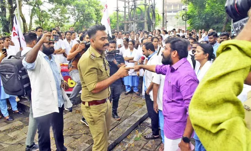 text_fieldsകേരള ഗവ. നഴ്സസ് അസോസിയേഷൻ കലക്ടറേറ്റ് മാർച്ചിനിടെ ടൗൺ എസ്.ഐയോട്