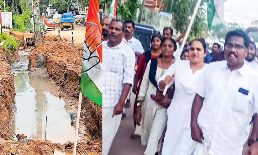 റോഡ് കൈയേറി ഓട നിർമിക്കുന്നത് ജോർജ് ജോസഫിന്റെ കടമുറികൾ സംരക്ഷിക്കാനെന്നാണ് കോൺഗ്രസ് ആരോപണം. ഓട നിർമാണവുമായി ബന്ധപ്പെട്ട് ചൊവ്വാഴ്ച രാവിലെ മുതൽ കോൺഗ്രസ് പ്രവർത്തകരുമായി തർക്കമായിരുന്നു. സി.പി.എം ജില്ല സെക്രട്ടറി കെ.പി. ഉദയഭാനു നേരിട്ട് സ്ഥലത്തെത്തി റോഡ് കൈയേറിയുള്ള ഓട പണിക്ക് നിർദേശം കൊടുത്തതാണ് തർക്കത്തിന് ഇടയാക്കിയത്.