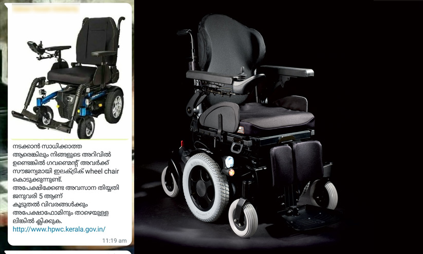 'സൗജന്യമായി ഇലക്ട്രിക് വീൽചെയർ'; മെസേജ് വ്യാജമെന്ന് വികലാംഗ ക്ഷേമ കോർപറേഷൻ