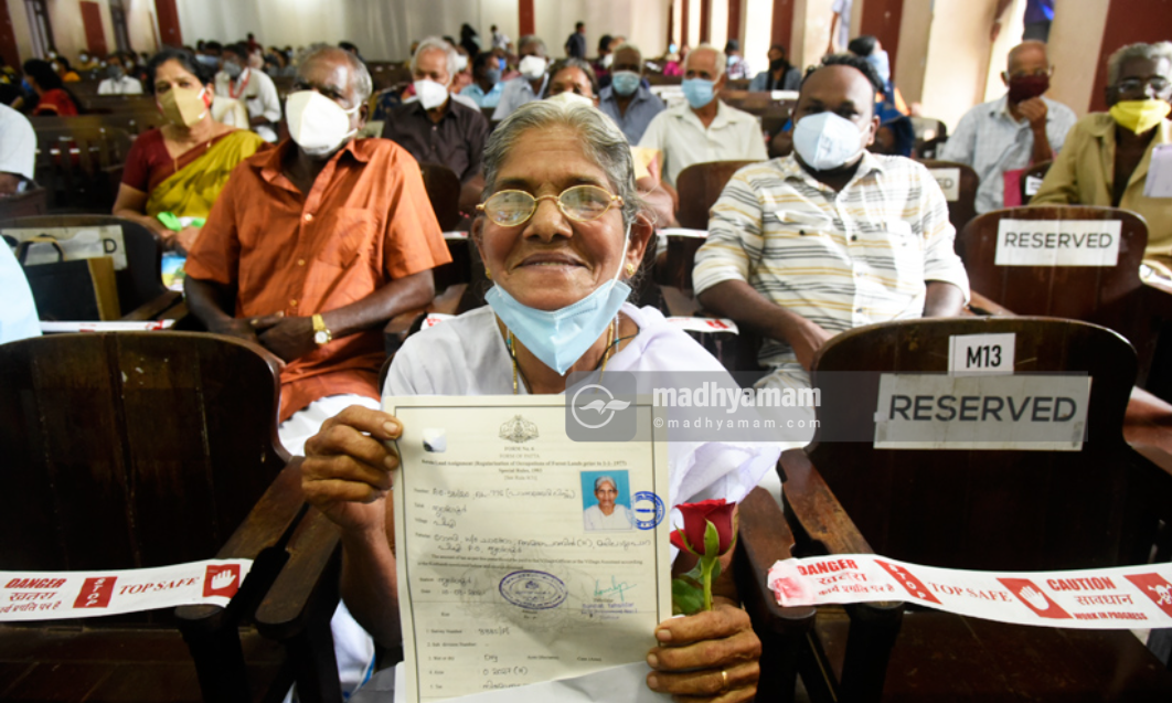 എല്ലാ ഭൂരഹിതർക്കും ഭൂമി നൽകാനുള്ള സ്പെഷല് ഡ്രൈവിനാണ് തുടക്കമിട്ടതെന്ന് അധ്യക്ഷത വഹിച്ച റവന്യൂ മന്ത്രി കെ. രാജന് പറഞ്ഞു. മലയോര കര്ഷകരുടെ പ്രശ്നങ്ങള്ക്ക് പരിഹാരം കാണാൻ ശ്രമം ഉണ്ടാകുമെന്നും മന്ത്രി കൂട്ടിച്ചേർത്തു. മന്ത്രിമാരായ കെ. രാധാകൃഷ്ണന്, ഡോ. ആര്. ബിന്ദു എന്നിവര് വിശിഷ്ടാതിഥികളായിരുന്നു. റവന്യൂ അഡീഷനല് ചീഫ് സെക്രട്ടറി ഡോ. എ. ജയതിലക് സ്വാഗതവും തൃശൂർ കലക്ടര് ഹരിത വി. കുമാര് നന്ദിയും പറഞ്ഞു.