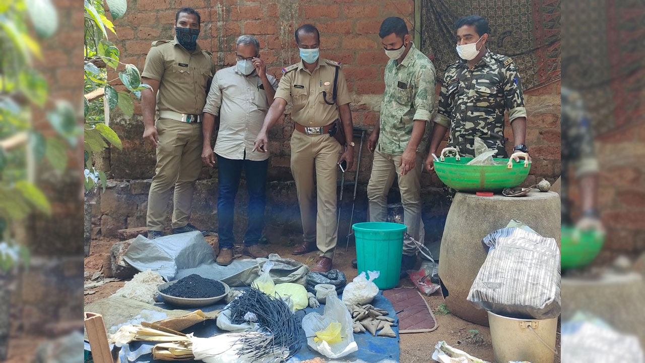 സൾഫർ(അഞ്ച് കിലോഗ്രാം), അലുമിനിയം പൗഡർ(മൂന്ന് കിലോഗ്രാം), പൊട്ടാസ്യം നൈട്രേറ്റ്(ഏഴ് കിലോഗ്രാം), ഓലപ്പടകം -25 എണ്ണം, ഗുണ്ട്, 500 ഗ്രാം പടക്കം നിർമ്മിക്കാനുള്ള തിരി തുടങ്ങിയവയാണ് പോലീസ് നടത്തിയ പരിശോധനയിൽ കണ്ടെത്തിയത്. ഈ വസ്തുക്കൾ വീടിന്റെ പല ഭാഗത്തായി ഒളിപ്പിച്ച നിലയിലായിരുന്നു. പരിശോധനയ്ക്ക് എത്തും മുമ്പേ പ്രതി രക്ഷപ്പെട്ടതായും ഇയാൾക്കായി അന്വേഷണം ഊർജ്ജിതമാക്കിയതായും പോലീസ് പറഞ്ഞു.