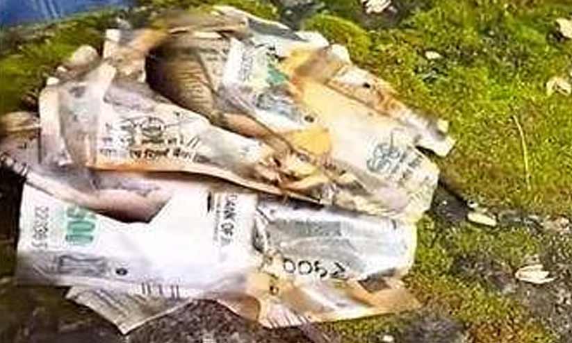 ശനിയാഴ്ച രാവിലെ 10ഓടെയാണ് മേലാക്കം-നെല്ലിപ്പറമ്പ് റോഡിന് സമീപത്തെ കവുങ്ങുതോട്ടത്തിലെ വെള്ളക്കെട്ടിൽനിന്ന് 500 രൂപയുടെ നോട്ടുകൾ കണ്ടെത്തിയത്. ഇതുവഴി പോവുകയായിരുന്ന ഒരുസ്ത്രീയാണ് നോട്ടുകൾ വെള്ളത്തിലൂടെ ഒഴുകുന്നത് കണ്ടത്. പ്രദേശവാസികൾ പരിശോധന നടത്തിയതോടെ പ്ലാസ്റ്റിക് കവറിൽ കെട്ടിയ കൂടുതൽ നോട്ടുകെട്ടുകൾ ലഭിച്ചു. ഏതാനും ചില നോട്ടുകൾ കത്തിച്ച നിലയിലുമായിരുന്നു.