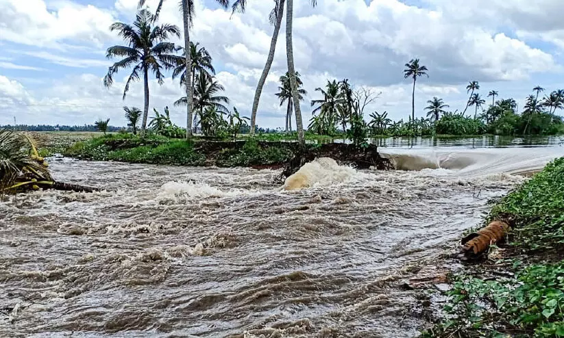 text_fieldsകുട്ടനാട് കല്ലുപുരയ്ക്കൽ ചിറയിൽ മടവീണ് വെള്ളം ഒഴുകുന്നു