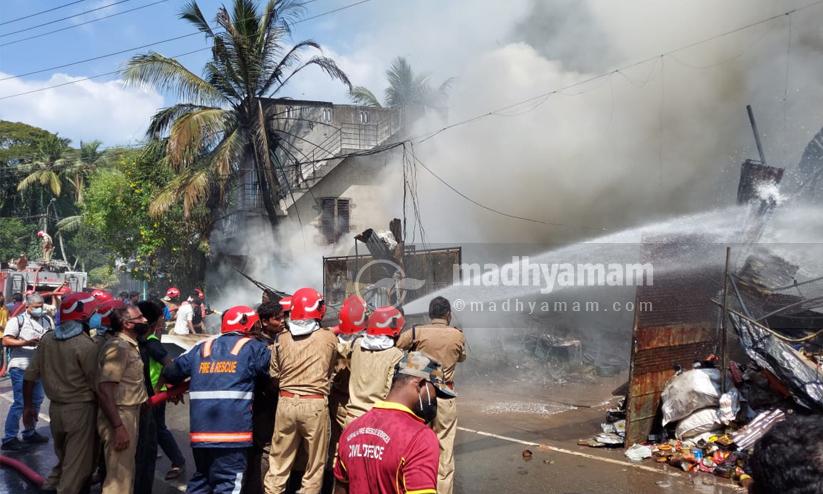 തിരുവനന്തപുരത്ത് ആക്രി ഗോഡൗണിൽ വൻ തീപിടിത്തം, 10 ലക്ഷത്തിന്റെ നഷ്ടം -വിഡിയോ