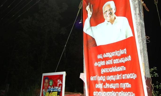 കണ്ണൂർ അഴീക്കോട്ട് പി. ജയരാജനെ പിന്തുണച്ച് ഉയർത്തിയ ഫ്ലക്സ് ബോർഡിൽ പി. ജയരാജൻ കൈവീശി അഭിവാദ്യം ചെയ്യുന്ന ചിത്രത്തോടൊപ്പം ``ഒരു കമ്യൂണിസ്റ്റിന്റെ കൈയിൽ രണ്ട് തോക്കുകൾ ഉണ്ടായിരിക്കണം. ഒന്ന് വർഗശത്രുവിനുനേരേയും രണ്ട് പിഴയ്ക്കുന്ന സ്വന്തം നേതൃത്വത്തിനെതിരേയും'' എന്ന വാക്കുകളാണ് ചേർത്തിരിക്കുന്നത്.
