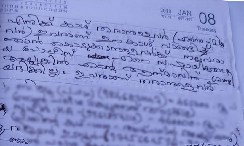 തൊട്ടടുത്ത വീട്ടിലെ വരാന്തയിൽ ഇവർ കൊണ്ടു വെച്ച പാൽ പാത്രത്തിന് അടിയിൽ നിന്ന് ആത്മഹത്യ കുറിപ്പ് കണ്ടെടുത്തിട്ടുണ്ട്. അതിൽ ബിജുവിന് പണം നൽകാനുള്ളവരുടെ പേരും ഫോൺ നമ്പറും കടം നൽകാനുള്ളവരുടെ വിവരങ്ങളും എഴുതിയിട്ടുണ്ട്. പത്തു ലക്ഷത്തിൽ അധികം കടം ബിജുവിനുണ്ടെന്നാണ് വിവരം. തനിക്ക് തരാനുള്ളവരിൽ നിന്ന് പണം വാങ്ങി കടക്കാർക്ക് നൽകണമെന്നും കുറിപ്പിലുണ്ട്. ഇയാൾ എഴുതിയ പ്രകാരം ലക്ഷത്തിലധികം രൂപ ലഭിക്കാനുണ്ട്. ഇതിനൊപ്പം വെച്ച സ്വർണാഭരണം വിറ്റ് അന്ത്യകർമങ്ങൾ നടത്തണമെന്ന് കുറിപ്പിലുണ്ട്. ചിട്ടി നടത്തിയതിന്റെ പണം നൽകേണ്ട അവസാന ദിവസമായിരുന്നു ഇന്നെന്ന് പറയുന്നു.