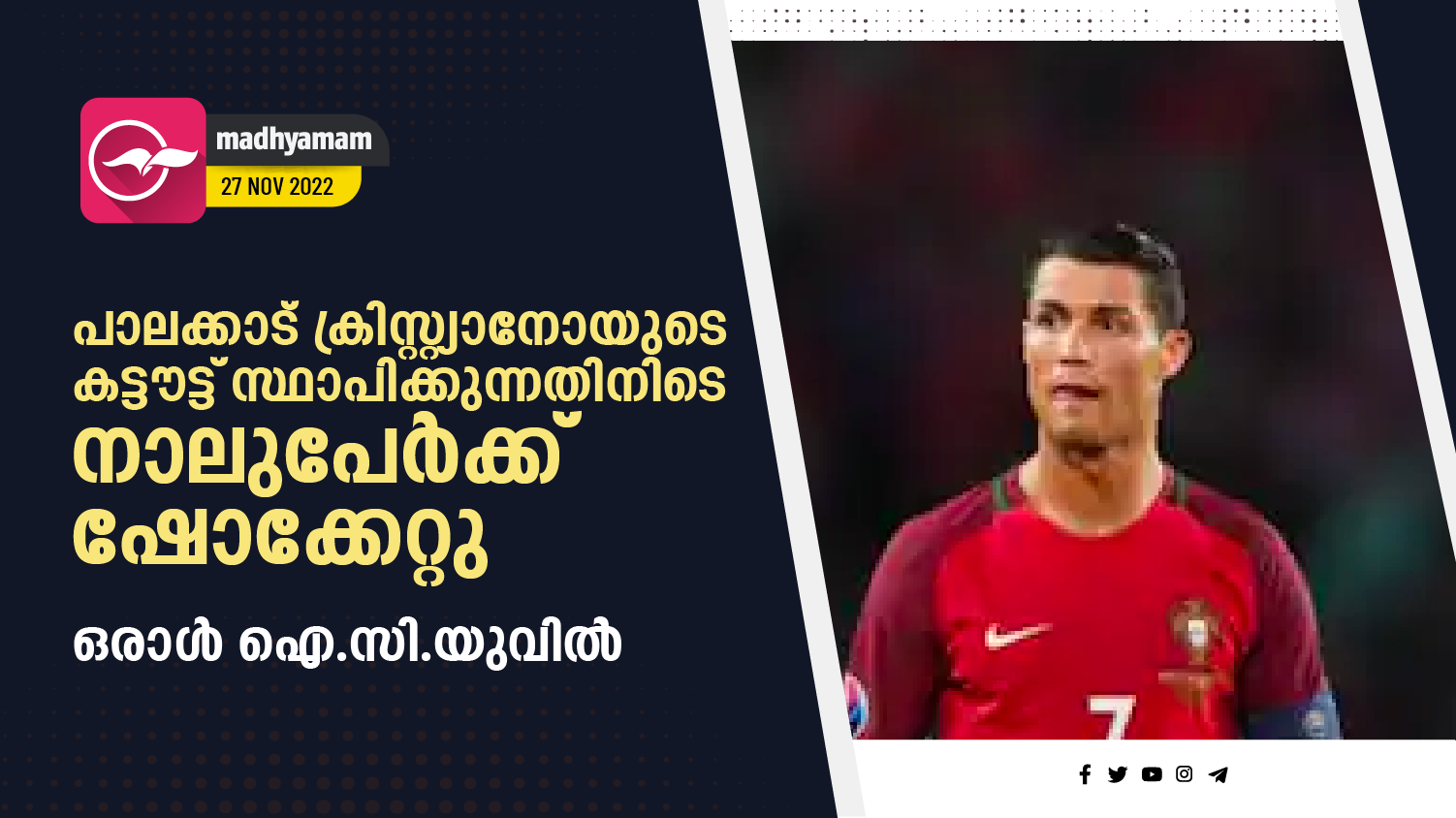 date_range 27 Nov 2022 10:44 PM ISTപാലക്കാട് ക്രിസ്റ്റ്യാനോയുടെ കട്ടൗട്ട് സ്ഥാപിക്കുന്നതിനിടെ നാലുപേർക്ക് ഷോക്കേറ്റു; ഒരാൾ ഐ.സി.യുവിൽ
