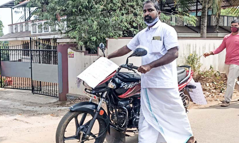 ഇന്ധന വിലവർധന: ബൈക്ക് തള്ളിയെത്തി ബജറ്റ് അവതരിപ്പിച്ച് അനീഷ് തോമസ്