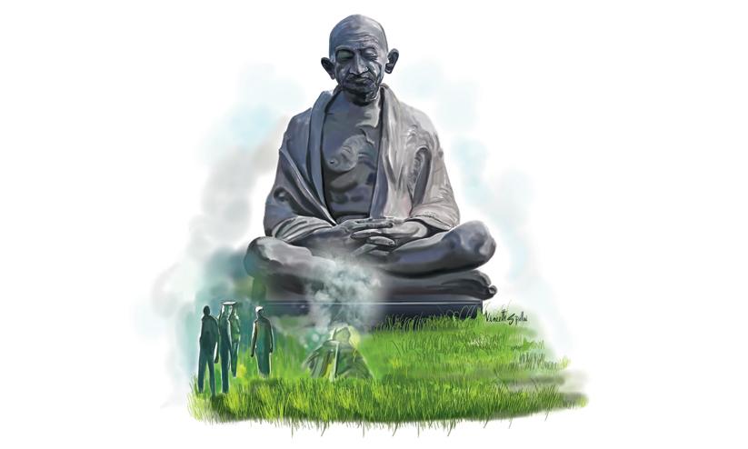 ഗാന്ധി വിഭാവനം ചെയ്ത സഹവർത്തിത്വവും മാനവികതയുമെല്ലാം ഒരറ്റത്തുനിന്ന് അടിച്ചുതകർത്തും ചരിത്രം തിരുത്തിയും ആ ശക്തികൾ സംഹാര നൃത്തം ചെയ്യുേമ്പാഴും ഇന്ത്യയെന്ന മഹാസങ്കൽപത്തിെൻറ ശാന്തിമന്ത്രമായി ഗാന്ധിദർശനം ഇന്നും നിലനിൽക്കുന്നു.