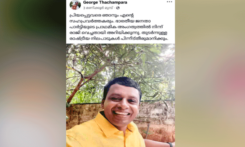 ജോർജ് തച്ചമ്പാറയും 110 സഹപ്രവർത്തകരും ബി.ജെ.പിയിൽനിന്ന് രാജിവെച്ചു