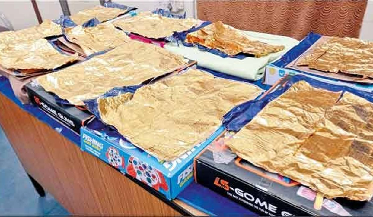 കാർഡ്ബോർഡ് പെട്ടിയിൽ കളിപാട്ടങ്ങൾക്കും ബെഡ്ഷീറ്റുകളുമാണുണ്ടായിരുന്നത്. രണ്ട് കാർഡ്ബോർഡ് ഷീറ്റുകളിലായാണ് പെട്ടി നിർമിച്ചിരുന്നത്. ഇതിനിടയിൽ കനംകുറഞ്ഞ സ്വർണതകിടുകൾ കാർബൺ പേപ്പറിൽ പൊതിഞ്ഞനിലയിലായിരുന്നു. പതിവിൽ കവിഞ്ഞ് പെട്ടിക്ക് ഭാരകൂടുതൽ അനുഭവപ്പെട്ടതിനെ തുടർന്ന് കീറി നോക്കുകയായിരുന്നു.