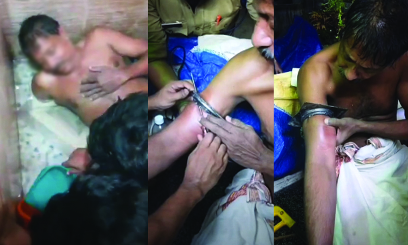 ഡ്രെയിനേജ് വൃത്തിയാക്കുന്നതിനിടെ ഫെബ്രുവരി 26ന് രാത്രിയാണ് മധ്യവയസ്കെൻറ കൈ കുടുങ്ങിയത്. വീട്ടുകാര് ശ്രമിച്ചിട്ടും കൈ പുറത്തെടുക്കാന് കഴിയാത്തതിനെത്തുടര്ന്നാണ് അഗ്നിരക്ഷാസേനയെ വിവരം അറിയിച്ചത്. തുടര്ന്ന് ടൈല്സ് അടക്കം മാറ്റി ആളെ രക്ഷപ്പെടുത്തുകയായിരുന്നു. കുളിമുറിയിലെ ഡ്രെയിനേജ് പൈപ്പില് തടസ്സം നേരിട്ട് വെള്ളം നിറഞ്ഞപ്പോഴാണ് ഗൃഹനാഥന് പൈപ്പ് വൃത്തിയാക്കാന് ശ്രമിച്ചതും കൈ കുടുങ്ങിയതും. രക്ഷാപ്രവര്ത്തനത്തിെൻറ വിഡിയോ പകര്ത്തിയ അഗ്നിരക്ഷാ സേനാംഗങ്ങള്തന്നെ ഇക്കാര്യം സ്ഥിരീകരിക്കുന്നു.
