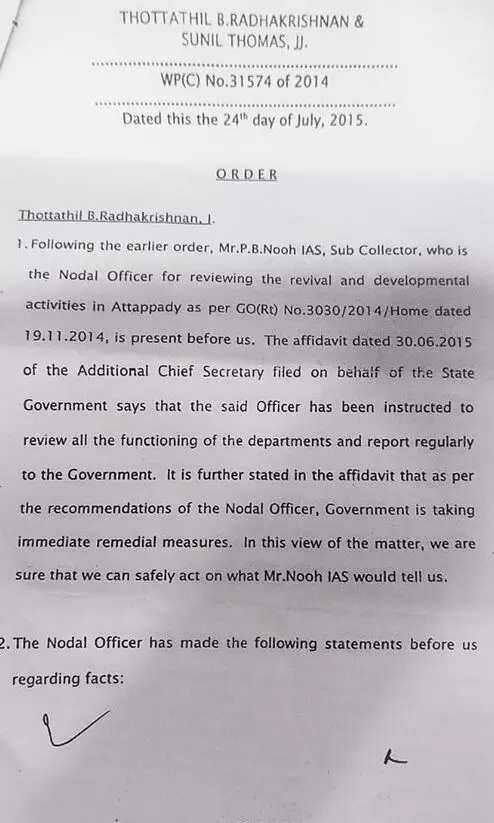 സാമൂഹികവും സാമ്പത്തികവുമായി വലിയ വെല്ലുവിളി നേരിടുന്ന ആദിവാസികൾ ഏറെയുള്ള അട്ടപ്പാടിയെ പ്രത്യേക മേഖലയായി കണക്കാക്കണം. അതായത് അട്ടപ്പാടിയിൽ ജീവിക്കുന്ന ആദിവാസികളുടെ ക്ഷേമും താൽപ്പര്യവും കണക്കിലെടുത്തായിരിക്കണം ഒരു പ്രത്യേക ഭരണയുനിറ്റാക്കേണ്ടത്. ഈ പ്രദേശത്തെ പ്രത്യേകമായി പരിഗണന നിൽകാനും തീരുമാനിക്കാനമെടുക്കാനും സർക്കാരിന് ഇത് വഴി സഹായകമാകുമെന്നും ഹൈകോടതി ചൂണ്ടിക്കാട്ടി.