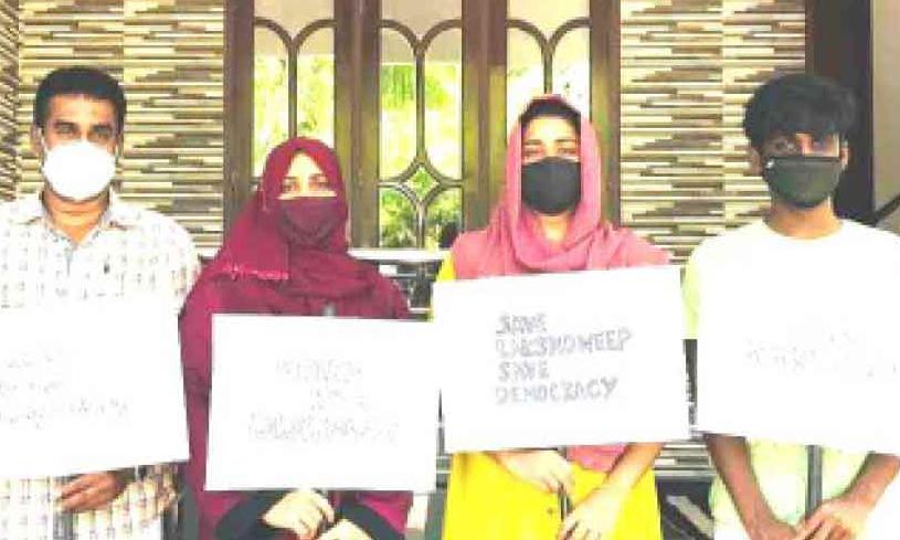 കളമശ്ശേരി: അഡ്മിനിസ്ട്രേറ്ററുടെ ജനവിരുദ്ധ നയങ്ങൾക്കെതിരെ നിരാഹാരമനുഷ്ഠിക്കുന്ന ലക്ഷദ്വീപ് നിവാസികൾക്ക് ഐക്യദാർഢ്യവുമായി ചേരാനല്ലൂരിലെ നാസറും കുടുംബവും.