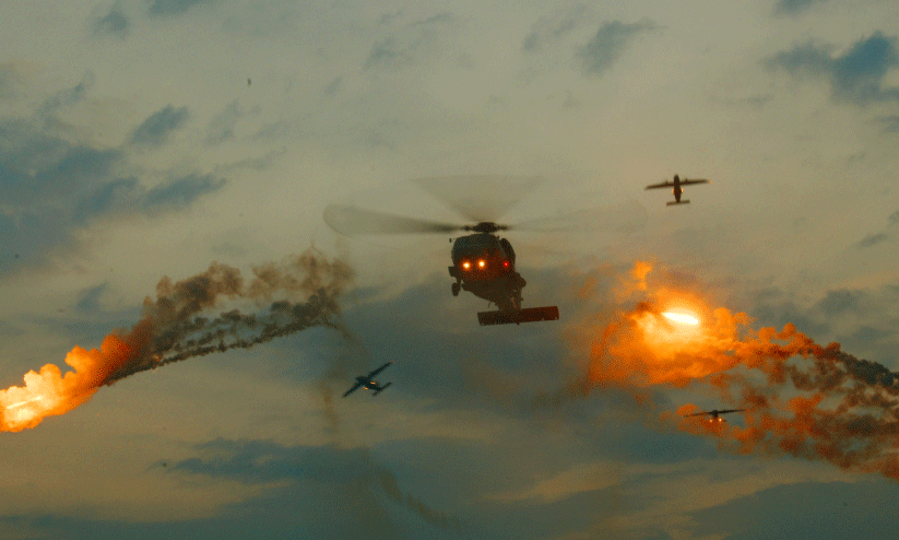 എ.എൽ.എച്ച് ഹെലികോപ്ടർ കായൽപരപ്പിന് തൊട്ടുമുകളിലേക്ക് പറന്നിറങ്ങി നാവികരെ വെള്ളത്തിലേക്ക് ഇറക്കുകയും വീണ്ടും പറന്നുയർന്നശേഷം വെള്ളത്തിലുള്ളവരെ രക്ഷപ്പെടുത്തി മുകളിലേക്ക് ഉയർത്തിയെടുക്കുകയും ചെയ്യുന്ന രക്ഷാപ്രവർത്തനം അവതരിപ്പിച്ചു. അക്രമികൾ തട്ടിയെടുക്കുന്ന ബോട്ട് ഹെലികോപ്ടറിലെത്തി നാവികസേന കീഴ്പ്പെടുത്തുന്നതും രക്ഷാപ്രവർത്തനം നടത്തുന്നതും ശ്രദ്ധേയമായിരുന്നു.