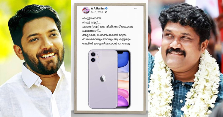'ഐ' ഫോൺ എന്നാൽ സി.പി'ഐ'എമ്മിലെ 'ഐ'; എ.എ റഹീമിനെ ട്രോളി ഷാഫി പറമ്പിൽ