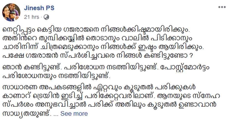 ഗജരാജൻ സ്പർശിച്ചവരെ നിങ്ങൾ കണ്ടിട്ടുണ്ടോ; ചർച്ചയായി ഡോക്ടറുടെ കുറിപ്പ്