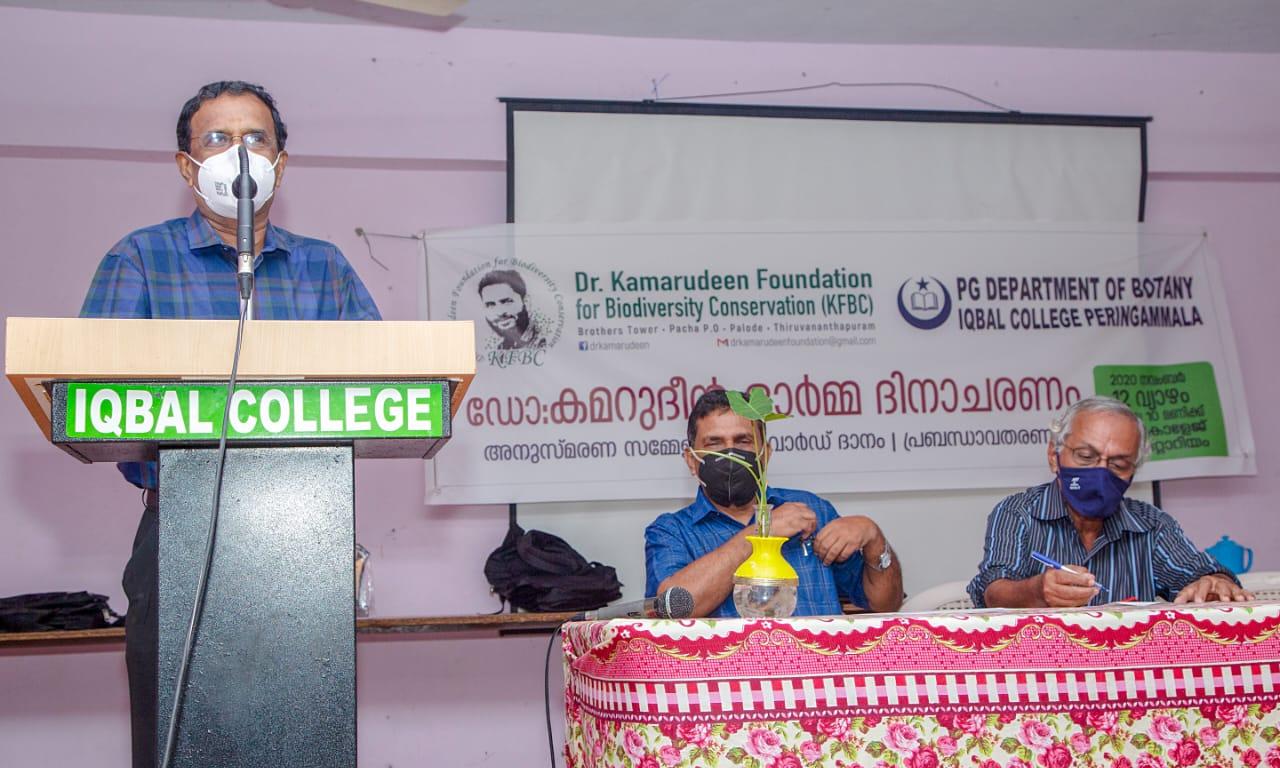 ട്രോപിക്കൽ ബോട്ടാണികൽ ഗാർഡൻ റിസർച്ച് ഇൻസ്റ്റിട്യൂട്ട് ഡയറക്ടർ ഡോ.ആർ. പ്രകാശ് കുമാർ ഉത്ഘാടനവും കമറുദ്ദീൻ- അവാർഡ് ദാനവും നടത്തി. കേരള യൂണിവേഴ്സിറ്റി എംഎസ് സി ബോട്ടണി പരീക്ഷയിൽ ഉയർന്ന വിജയം നേടിയ വിദ്യാഥികൾക്കാണ് കമറുദ്ദീൻ അവാർഡുകൾ നൽകിയത്. ഇക്ബാൽ കോളജ് മുൻ പ്രിൻസിപ്പൽ ഡോ.സലാഹുദ്ദീൻ മുഖ്യ പ്രഭാഷണം നടത്തി. പ്രിൻസിപ്പൽ ഡോ.യു.അബ്ദുൾ കലാം, ഡോ പി നുസൈഫാ ബീവി, ഡോ.എ.ഇ ഷാനവാസ് ഖാൻ എന്നിവർ അനുസ്മണപ്രഭാഷണം നടത്തി. ഡോ. എ.അർ.വിജി യോഗത്തിന് നന്ദി പറഞ്ഞു.