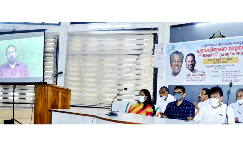 text_fieldsകാസര്കോട്, മഞ്ചേശ്വരം താലൂക്കുകളില് റവന്യൂ ഇ -ഓഫിസ് പ്രഖ്യാപനവും പട്ടയമേളയുടെ ഉദ്ഘാടനവും മന്ത്രി കെ. രാജന് ഓണ്ലൈനിലൂടെ നിര്വഹിക്കുന്നു